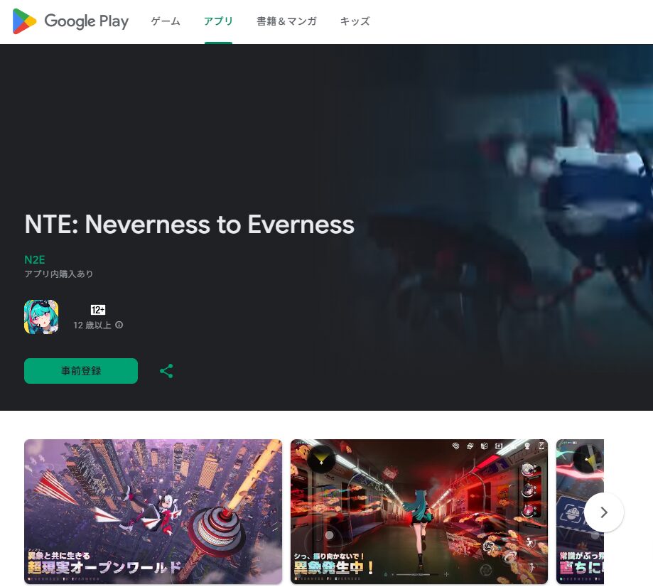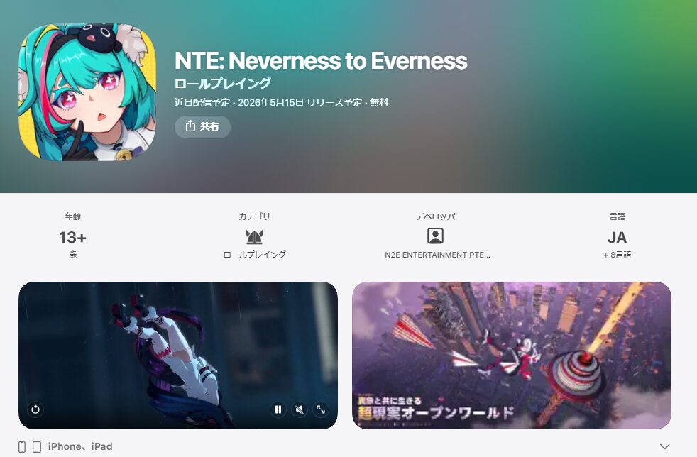 iOSのApp Storeでは、NTEの配信予定日として